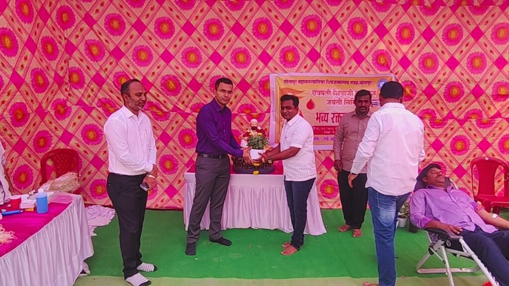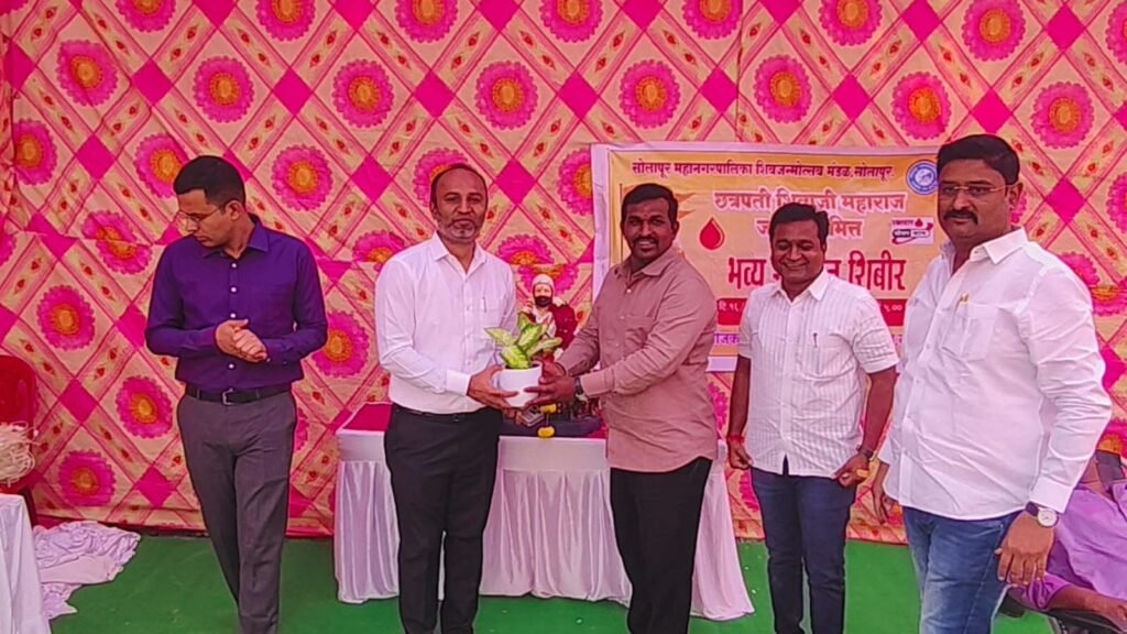 सोलापूर दि. 17 : छत्रपती शिवाजी महाराज जयंती उत्सवाचे औचित्य साधून, छत्रपती शिवाजी महाराज जयंती मंडळ (सोमपा) यांच्या वतीने सोलापूर महानगरपालिका परिसरात भव्य रक्तदान शिबिराचे आयोजन करण्यात आले होते. या शिबिराचे उद्घाटन मान्यवरांच्या हस्ते उत्साहात पार पडले.