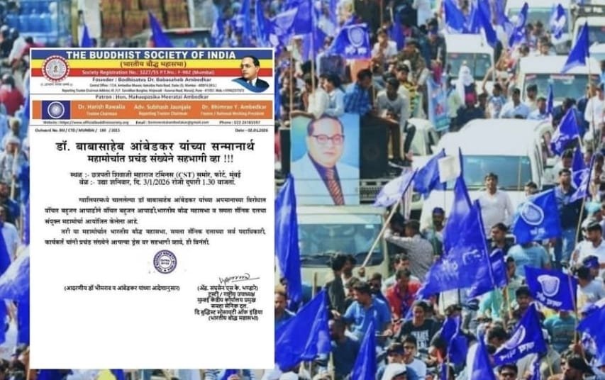 मुंबई दि. ३ : ग्वालियर येथे महामानव डॉ. बाबासाहेब आंबेडकर यांचा झालेल्या कथित अपमानाच्या निषेधार्थ आज, शनिवार दि. ३ जानेवारी २०२६ रोजी मुंबईत एक भव्य व ऐतिहासिक ‘महामोर्चा’ आयोजित करण्यात आला आहे. या मोर्चामुळे राज्यभरात तीव्र राजकीय व सामाजिक प्रतिक्रिया उमटल्या असून, आंबेडकरी चळवळ पुन्हा एकदा रस्त्यावर उतरणार आहेत.