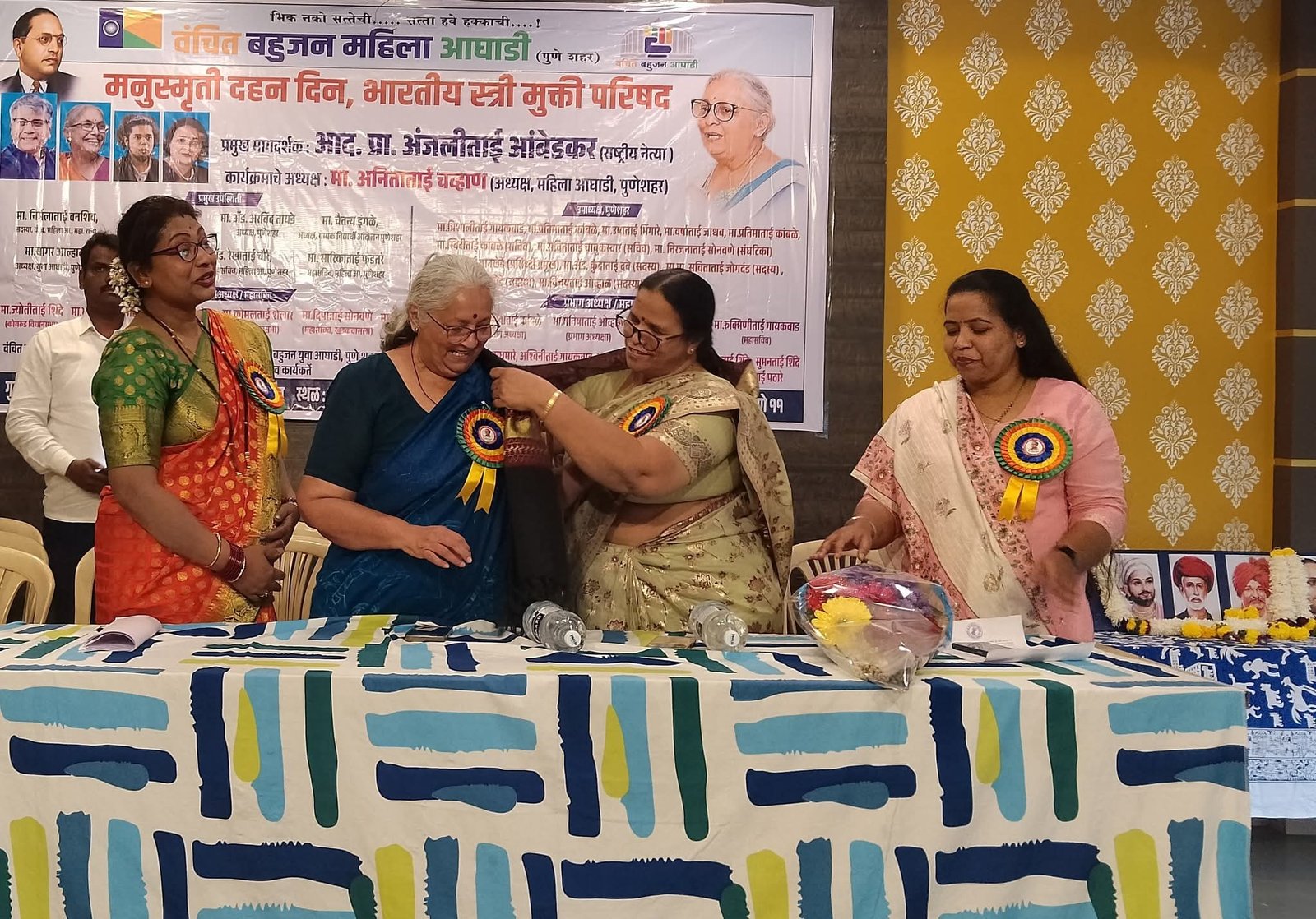 पुणे दि. 25 : “भीक नको सत्तेची, सत्ता हवी हक्काची” ही गर्जना करत वंचित बहुजन महिला आघाडी, पुणे शहर यांच्यावतीने आज २५ डिसेंबर रोजी ‘मनुस्मृती दहन दिन’ आणि ‘भारतीय स्त्री मुक्ती परिषद’ मोठ्या उत्साहात साजरी करण्यात आली. सोमवार पेठ येथील जनसागर हॉलमध्ये पार पडलेल्या या परिषदेत महिलांच्या हक्क आणि अधिकारांबाबत मंथन करण्यात आले.या परिषदेला मुख्य मार्गदर्शक म्हणून वंचित बहुजन आघाडीच्या राष्ट्रीय नेत्या प्रा. अंजलीताई आंबेडकर उपस्थित होत्या.