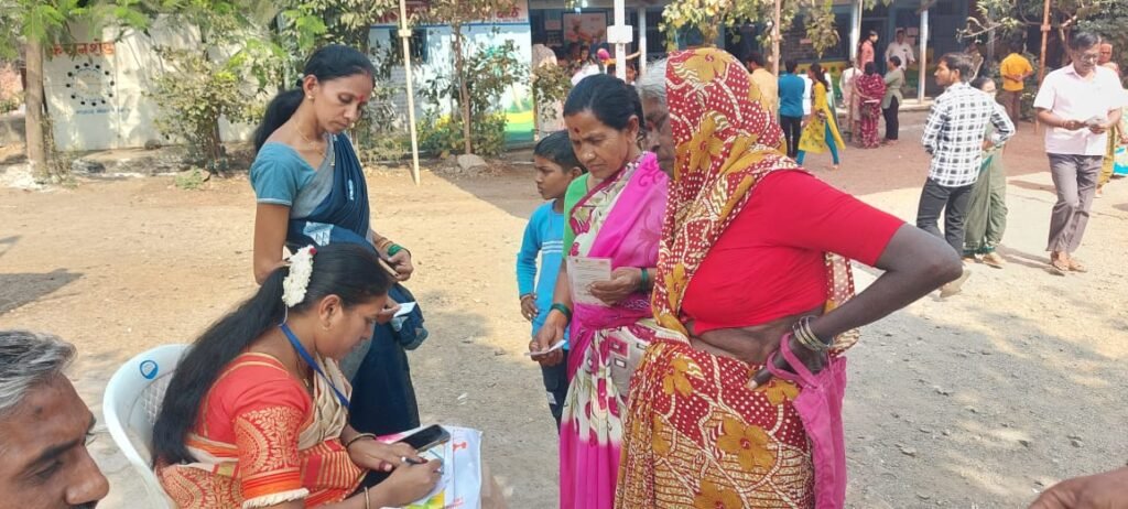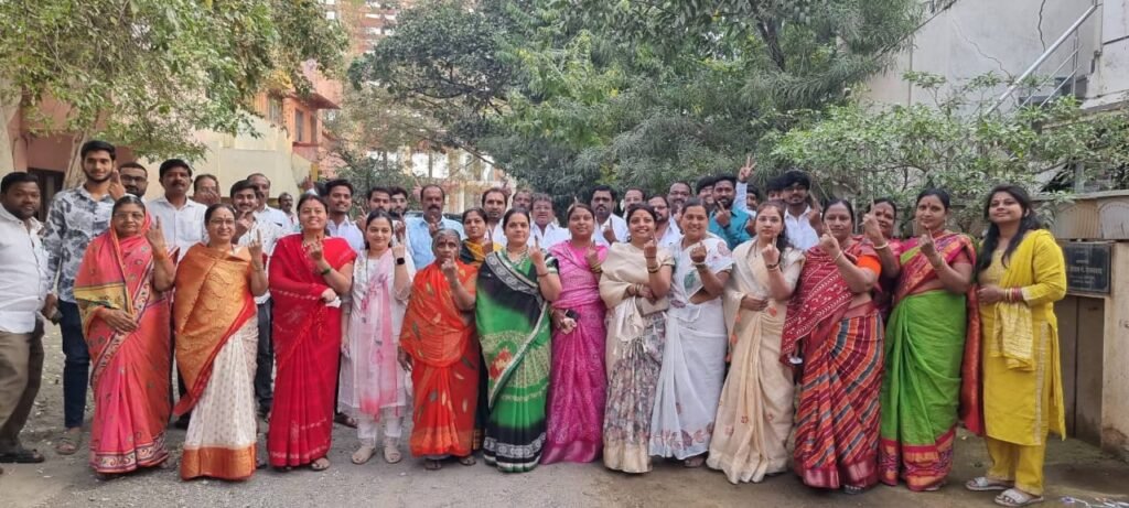धरमशी लाईन येथील मतदार बंधू भगिनींनी मतदान केल्यानंतर दिलेली पोझ