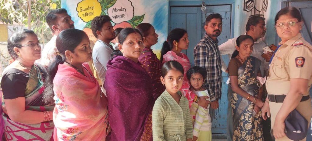बाळे मतदान केंद्रावरील मतदाराच्या रांगा