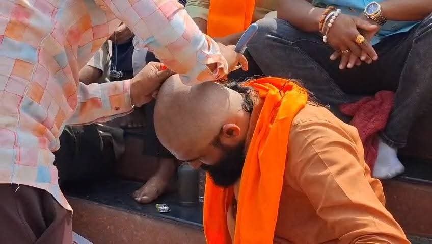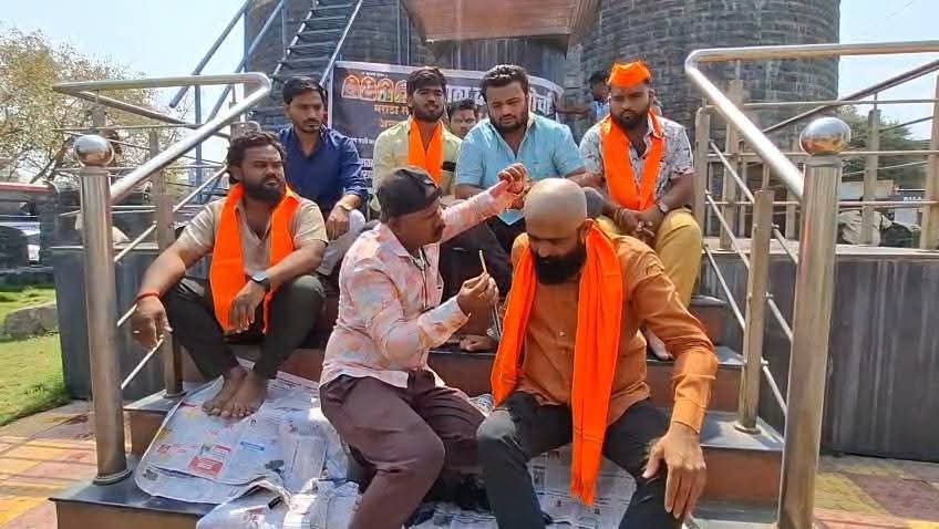 यावेळी छत्रपती संभाजी महाराज यांच्या पुतळ्यासमोर मुंडन करून आंदोलनकर्त्यांनी भाजपचा जाहीर निषेध नोंदवला.