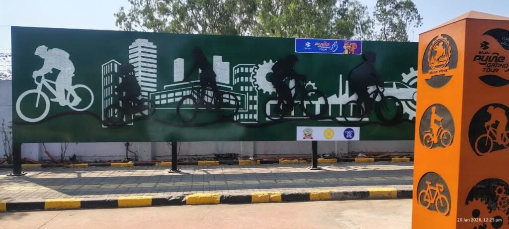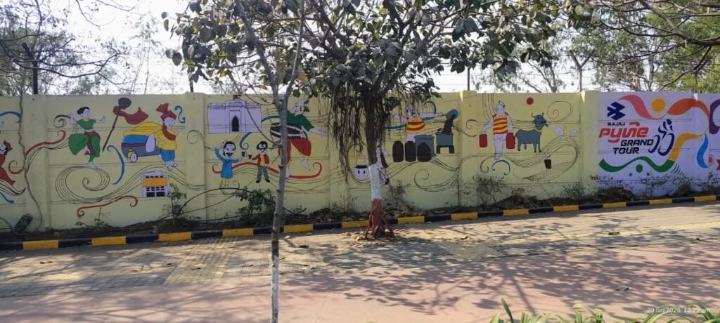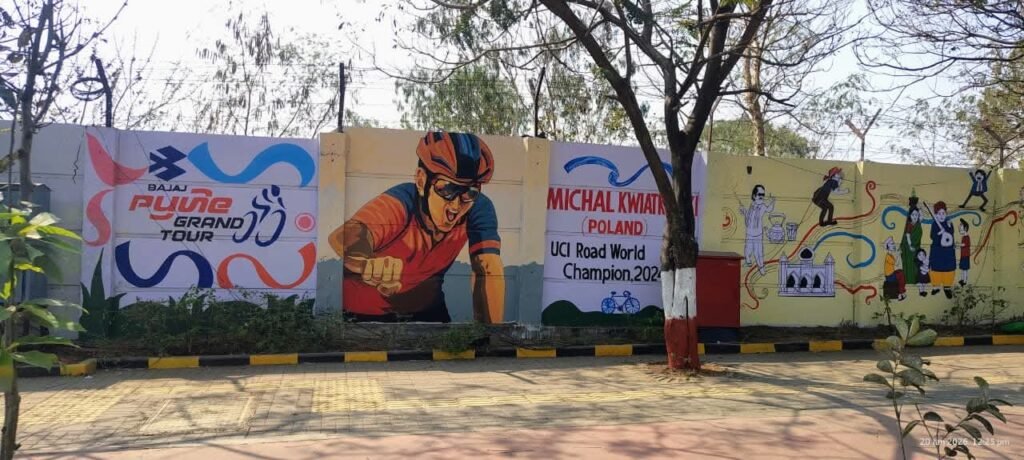 ‘भारतातील पहिली जागतिक सायकलिंग स्पर्धा’ असा उल्लेख असलेली ही चित्रे पुण्याला जागतिक क्रीडा नकाशावर नेण्यासाठी सज्ज झाली आहेत. प्रशासनाचा पुढाकार आणि नागरिकांचा प्रतिसादमहापालिका आयुक्त श्रावण हर्डीकर यांच्या मार्गदर्शनाखाली पुणे आणि पिंपरी-चिंचवड महानगरपालिका माध्यमातून शहराच्या सौंदर्यीकरणाचा हा प्रकल्प राबवण्यात आला आहे.