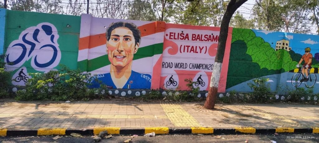 जागतिक दर्जाच्या खेळाडूंची ओळख या भित्तिचित्रांमध्ये केवळ सायकलिंगच नव्हे, तर विविध खेळांतील दिग्गज आणि उगवत्या ताऱ्यांचा गौरव करण्यात आला आहे. यामध्ये प्रामुख्याने २०२० चा रोड वर्ल्ड चॅम्पियनचा असलेला इटलीचा एलिसा बालसामो याचे चित्र क्रीडाप्रेमींचे लक्ष वेधून घेत आहे. जागतिक अजिंक्यपद स्पर्धेत सहभागी होणारे पहिले भारतीय रोड सायकलपटू अरविंद पवार यांचे चित्र आजच्या तरुणाईसाठी प्रेरक आहे.२०२५ च्या ट्रॅक आशिया कपमध्ये सुवर्णपदक जिंकणाऱ्या हर्षिता जाखड यांचे चित्र ‘वुमन पॉवर’चा संदेश देणारे आहे.