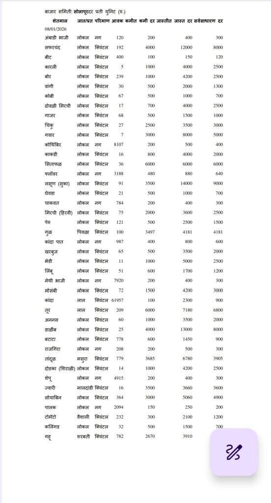 सर्व शेतकऱ्यांसाठी कृषी उत्पन्न बाजार समितीचे आजचे भाजी दर आपण देत आहोत.