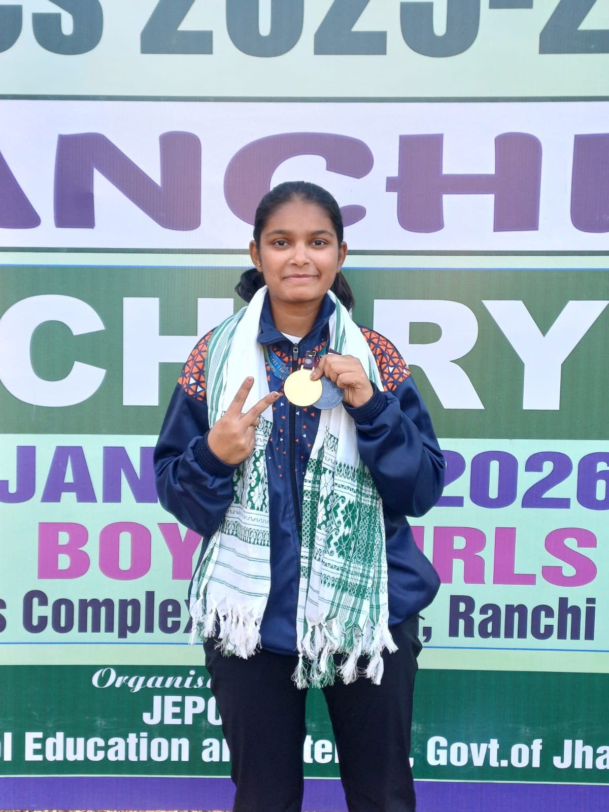 सोलापूर दि. 12 : प्रतिनिधी रांची (झारखंड) येथे दि. ६ ते १० जानेवारी २०२६ या कालावधीत पार पडलेल्या ६९ व्या राष्ट्रीय शालेय क्रीडा स्पर्धेत ‘आर्चरी – रिकर्व्ह’ या क्रीडा प्रकारात श्रीमती निर्मलाताई ठोकळ कनिष्ठ महाविद्यालयातील इयत्ता ११ वी मध्ये शिक्षण घेणाऱ्या प्रगती शिंदे हिने उल्लेखनीय यश संपादन केले. १७ वर्षां खालील वयोगटात पुणे विभागाचे प्रतिनिधित्व करत तिने या स्पर्धेत सुवर्ण व कांस्य अशी दोन पदके पटकावत महाराष्ट्राच्या शिरपेचात मानाचा तुरा रोवला.