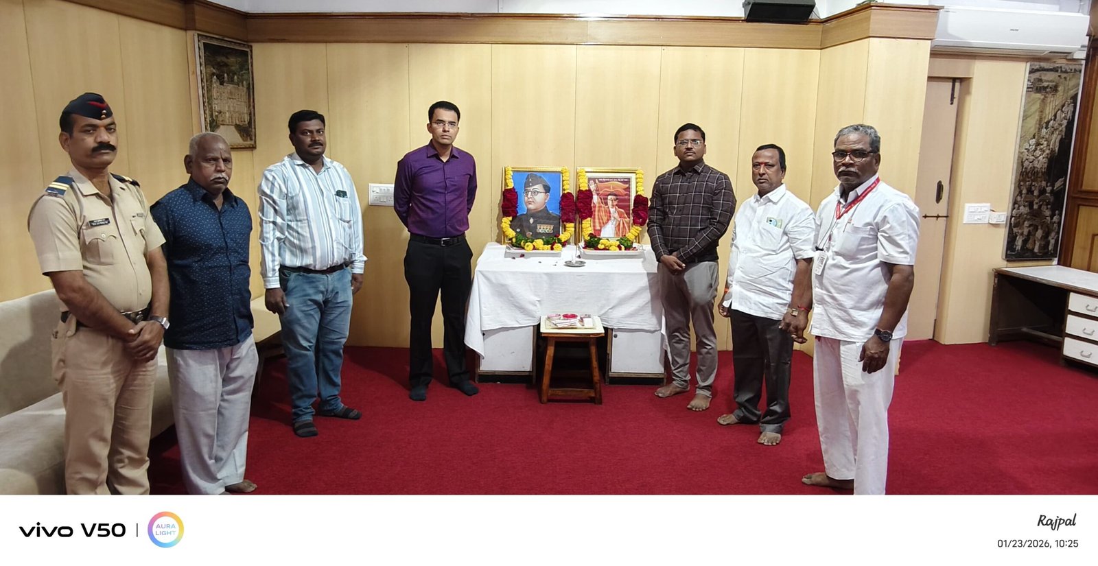 सोलपूर महानगरपालिकेच्या वतीने नेताजी सुभाषचंद्र बोस यांच्या जयंतीनिमित्त व शिवसेना प्रमुख दिवंगत बाळासाहेब ठाकरे यांच्या जयंतीनिमित्त सोलापूर महानगरपालिकेच्या कौन्सिल हॉल येथील आयुक्त यांच्या कार्यालयात नेताजी सुभाष चंद्र बोस व शिवसेना प्रमुख बाळासाहेब ठाकरे यांच्या प्रतिमेस आयुक्त डॉ.सचिन ओम्बासेयांच्या हस्ते पुष्पहार अर्पण करून अभिवादन करण्यात आले.